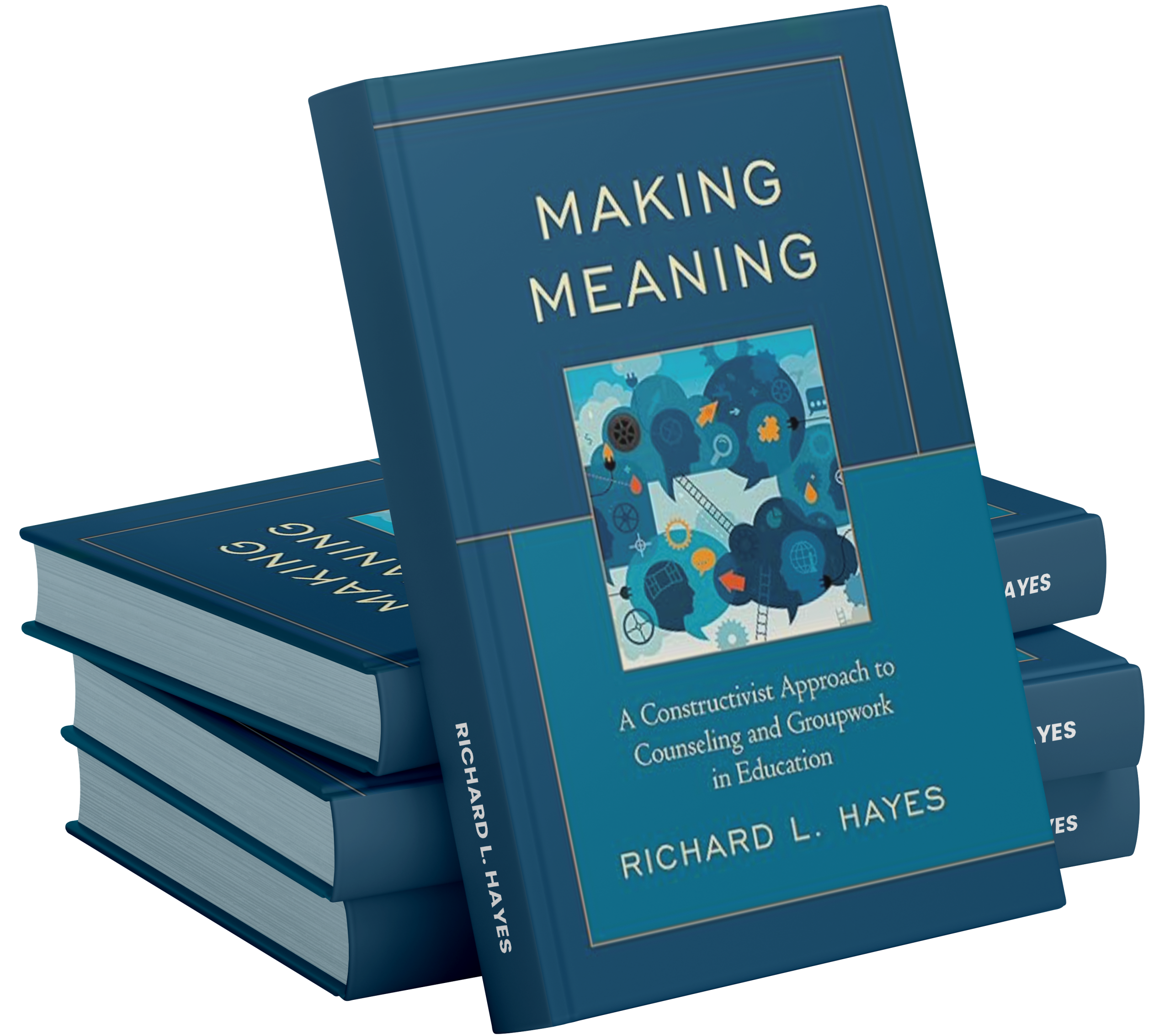Hayes, R. L. (2020). Making meaning: A constructivist approach to counseling and groupwork in education. Lanham, MD: Lexington/Rowman & Littlefield. This integrative book brings forty years of research and scholarship in counseling, psychology, and education together in a singular analysis. In Making Meaning, Hayes illustrates how the construction of meaning can have a profound effect on how we come to know ourselves and others. Hayes depicts meaning-making as an ongoing, dialectical, and recursive process of change and reinvention. This process plays a central role in individual development and loss and helps promote multiculturalism, collaboration, and group and team development. This book is recommended for mental health professionals and educators looking to promote democratic learning communities.